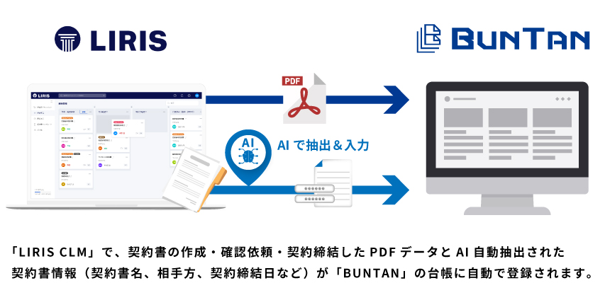 紙から電子まで一元管理できる契約書管理システム「BUNTAN」とAI契約管理アプリケーション「LIRIS CLM」が連携~契約ワークフローから契約締結、締結後の契約書管理、原本保管まで一気通貫に~